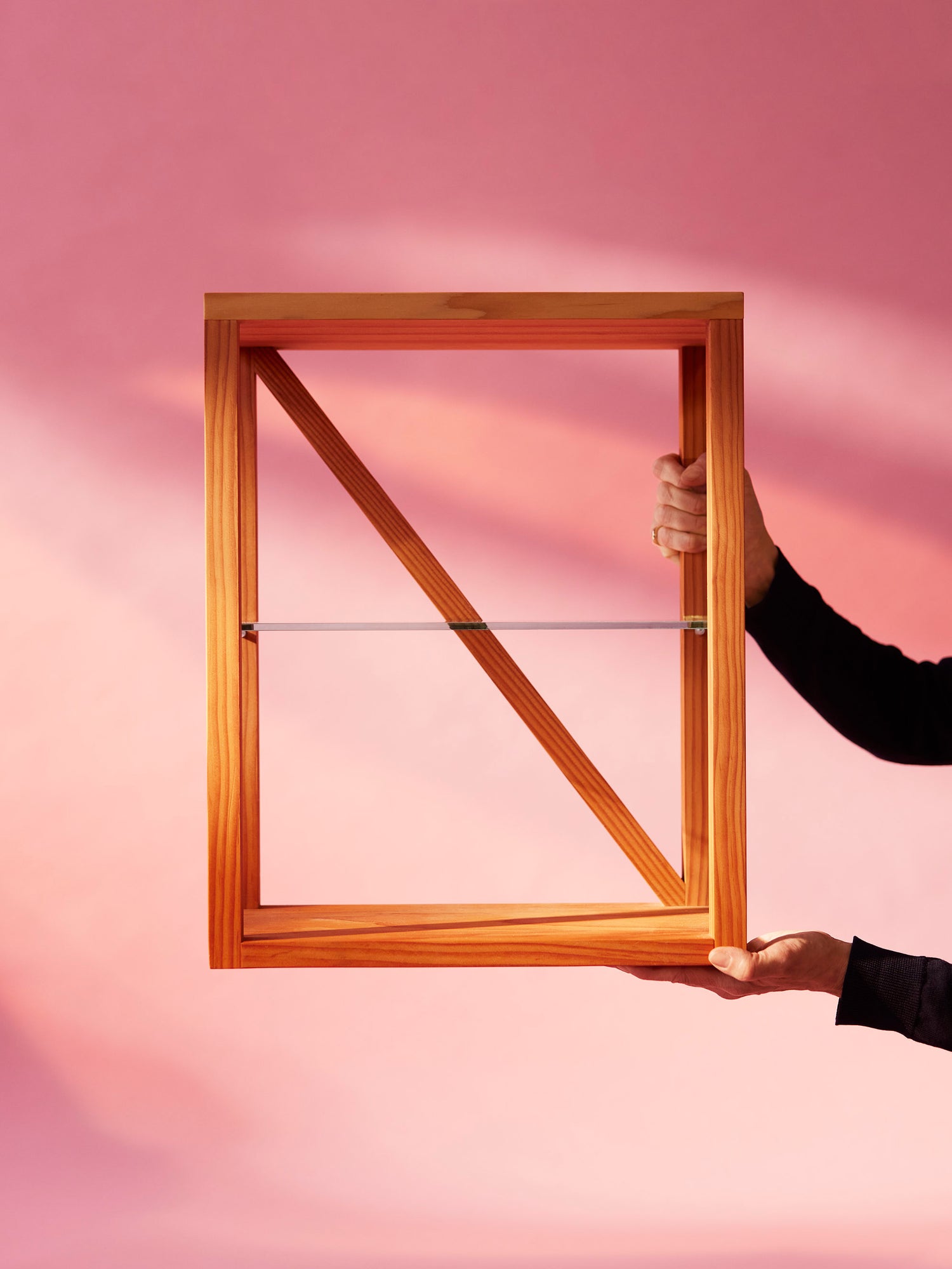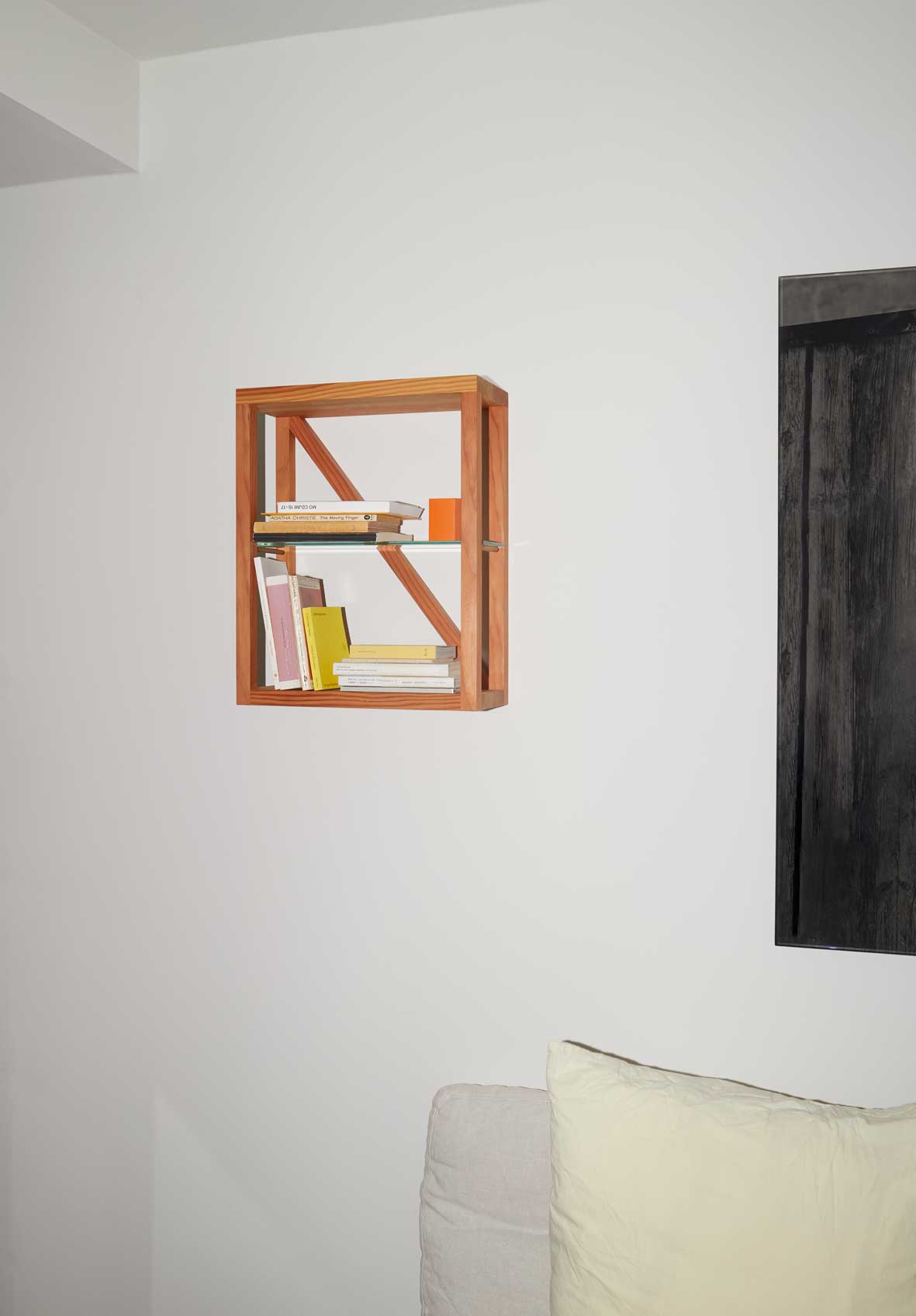A shelf reduced to its essence, OPEN SHELF is defined by its construction, simple pieces of Oregon pine paired with glass bring a sense of solidity and transparency.