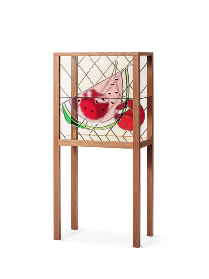 Using stained glass, a traditional craft of joining pieces of glass to create a decorative effect, the Fruit Cabinet explores the clash between the aesthetics and the materials and eras - how well known elements, when mixed, can create something interesting.