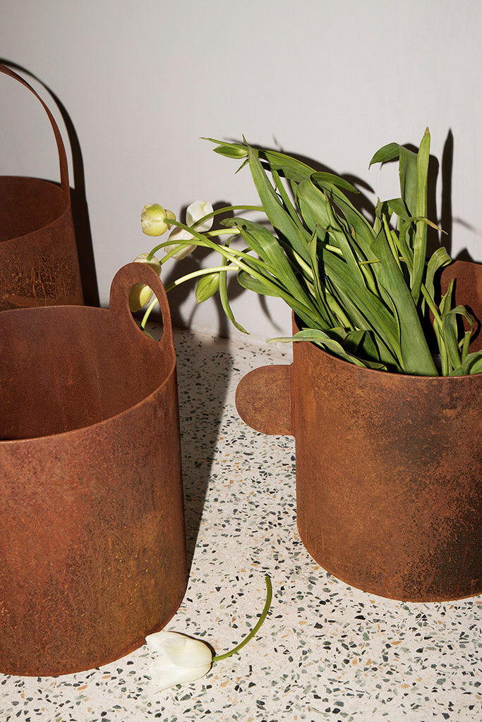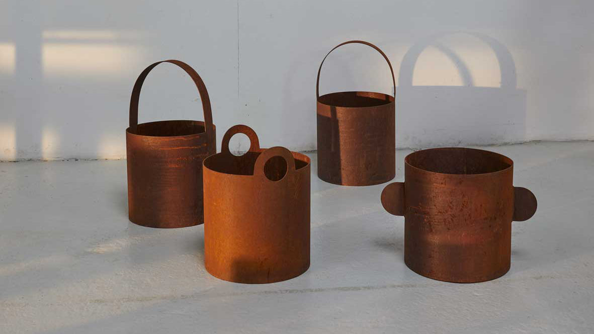 Reinterpreting the most basic of objects, BUCKETS combine a raw industrial material with the simplest of expressions. Made in Corten steel for use outdoors as planters or receptacles for wood or tools, BUCKETS 1, 2, 3 are both archetypal and original.